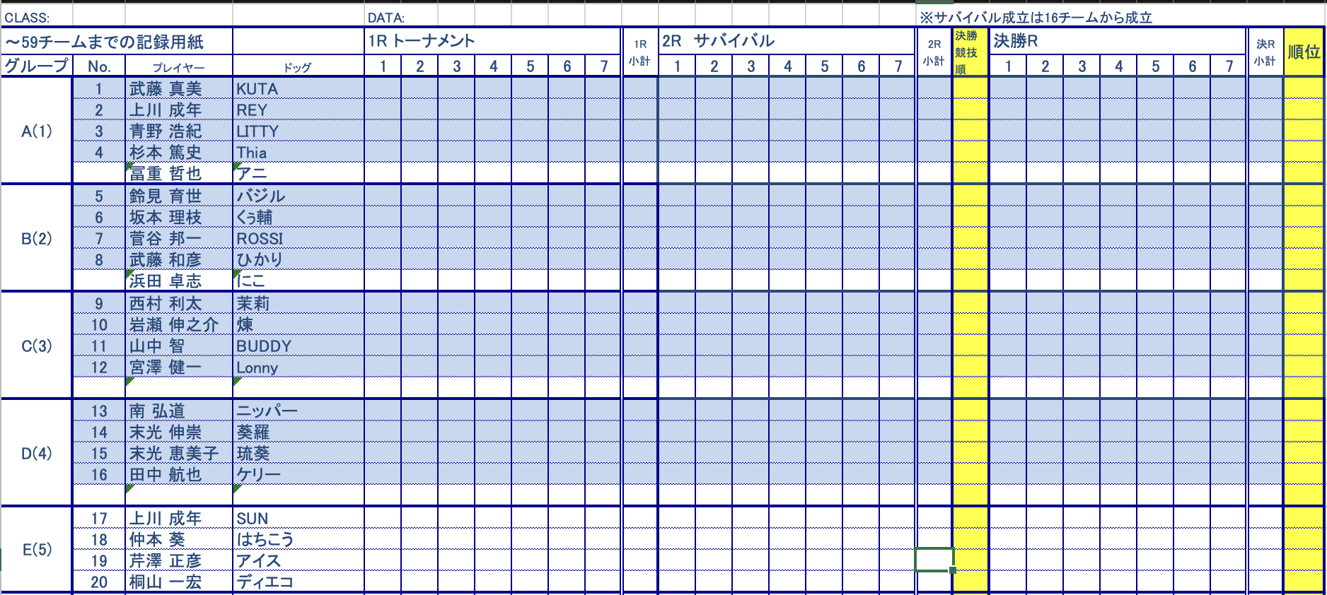競技順、エントリー順にお目通しいただき、ご自分の出番に備えていただけますようお願いします。