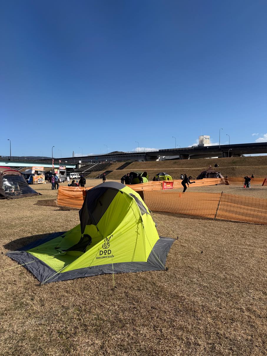 風などを考慮して、ご自身のタープを立てていただき場所の確保をお願い申し上げます。