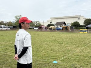 裕子さんのプレイを見届ける坂本さん。ジャッジの時に近くの杭をグイグイ回したりせずにちょっと落ち着いてもらいたいです🤣